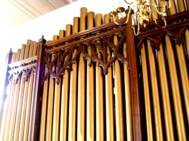 Case detail. The case and facade was built by Rappahannock Organ Company. |